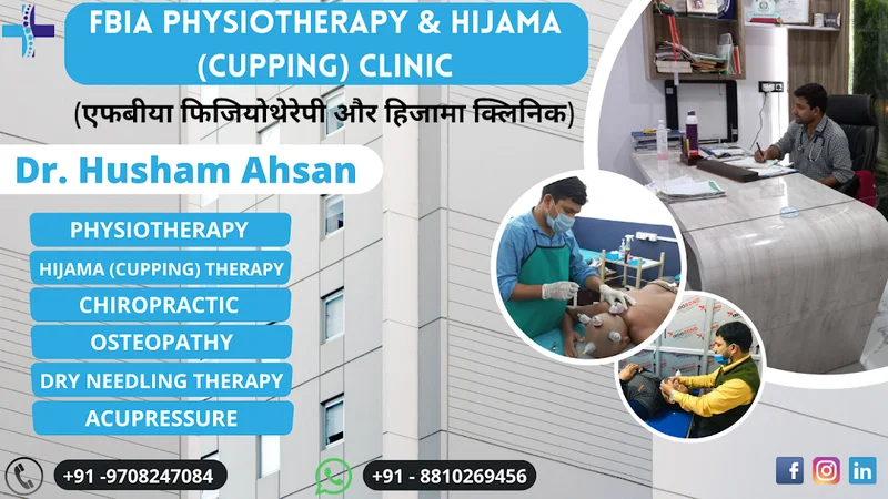 Best Physical therapist "Dr. Husham Ahsan (PT) is one of the most renowned and honored personalities in the field of physiotherapy (Bihar). Who specializes in rehabilitating orthopedics & musculoskeletal disorders (Back pain, Neck pain, Shoulder pain, Knee pain, Heel pain) and Hijama/Cupping (Hair fall, Skin disease, Organ disease, Male/Female problems) and Chiropractic & Osteopathy (Spine/Joint alignment or adjustment) and Acupressure. He practices at FBIA Clinic, Kumar Hospital . He has over 8 years of academic and clinical experience.
