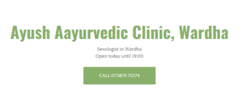 Best Aayurvedic Clinic In Wardha Maharashtra. Ayush Ayurvedic Clinic is a medical clinic run by Dr.MS Raj where treatment for male as well as female sexual problems is given by drugs as well as counselling. Sexual problems in men and women can be due to physical, psychological and relational causes. The sexual dysfunction is treated here in a most personalised way as every person is unique and his/her reasons of sexual problem can be different and hence every person is treated specially at this ...