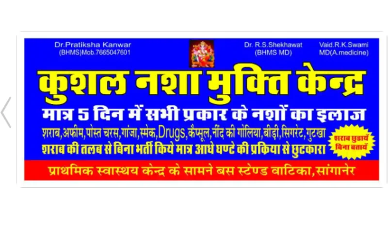 Best Kushal Homeopathy Clinic and Nasha Mukti Cente in Jaipur. Among the finest Homeopathic Doctors in the city, Kushal Homoeopathy and Nasha Mukti Center Vatika, Sanganer, Jaipur-303905 is known for offering excellent patient care. The clinic is located centrally , Jaipur, a prominent locality in the city. It stands close to Opposite PHC Watika, PHC Hospital, PHC Vatika, Sanganer, Jaipur. There is no dearth of public modes of transport to reach the clinic from all major areas of the city.